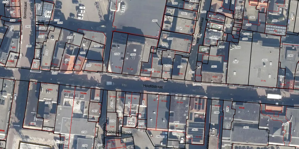 Hoofdstraat 67-A is gelegen op kadastraal perceel NWK02E2531. Deze kadastrale aanduiding is uniek en wordt gebruikt door het Kadaster om eigendomsrechten en andere zakelijke rechten vast te leggen. Het perceel maakt onderdeel uit van de kadastrale gemeente Noordwijk.