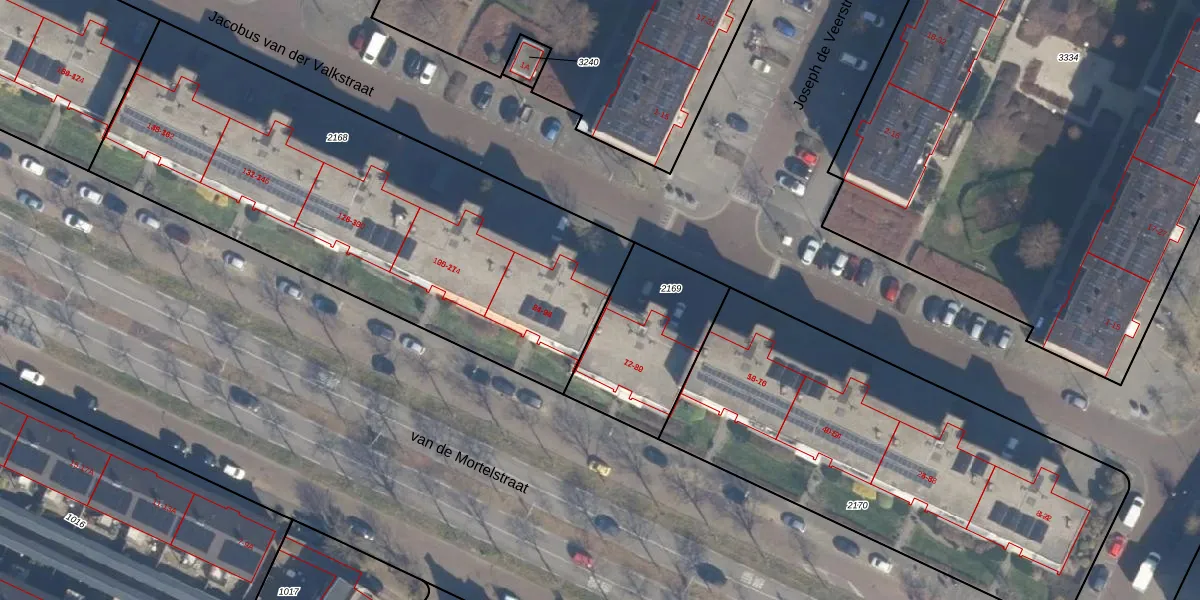 Het perceel waarop Jacobus van der Valkstraat 21 staat heeft een oppervlakte van 2450 m². Dit is een zeer groot perceel. De perceeloppervlakte wordt geregistreerd door het Kadaster. Gedetailleerde informatie over de maten van dit perceel kunt u vinden in het rapport Kadastrale kaart met maatvoering van Jacobus van der Valkstraat 21.