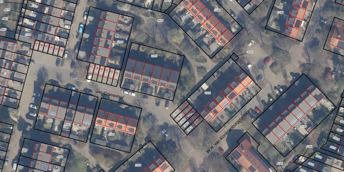 Het perceel waarop Jan Cramerhof 2 staat heeft een oppervlakte van 856 m². Dit is een groot perceel. De perceeloppervlakte wordt geregistreerd door het Kadaster. Gedetailleerde informatie over de maten van dit perceel kunt u vinden in het rapport Kadastrale kaart met maatvoering van Jan Cramerhof 2.