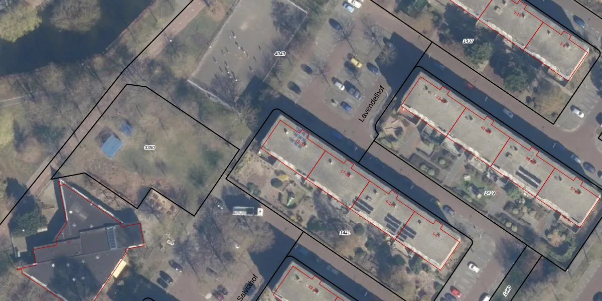 Het perceel waarop Lavendelhof 32 staat heeft een oppervlakte van 2319 m². Dit is een zeer groot perceel. De perceeloppervlakte wordt geregistreerd door het Kadaster. Gedetailleerde informatie over de maten van dit perceel kunt u vinden in het rapport Kadastrale kaart met maatvoering van Lavendelhof 32.
