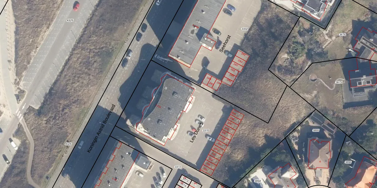 Het perceel waarop Les Dunes 21-B staat heeft een oppervlakte van 3402 m². Dit is een zeer groot perceel. De perceeloppervlakte wordt geregistreerd door het Kadaster. Gedetailleerde informatie over de maten van dit perceel kunt u vinden in het rapport Kadastrale kaart met maatvoering van Les Dunes 21-B.