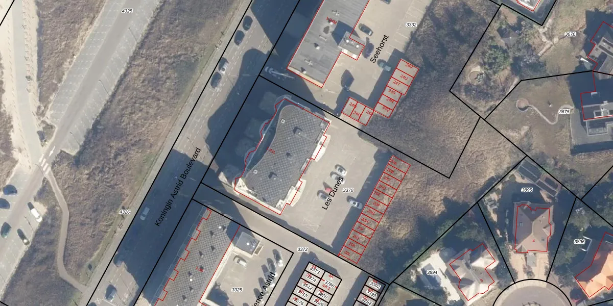 Het perceel waarop Les Dunes 21-E staat heeft een oppervlakte van 3402 m². Dit is een zeer groot perceel. De perceeloppervlakte wordt geregistreerd door het Kadaster. Gedetailleerde informatie over de maten van dit perceel kunt u vinden in het rapport Kadastrale kaart met maatvoering van Les Dunes 21-E.