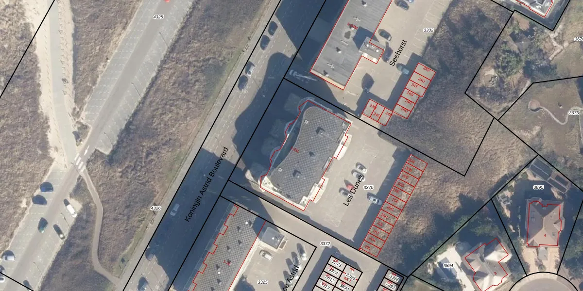 Het perceel waarop Les Dunes 4 staat heeft een oppervlakte van 3402 m². Dit is een zeer groot perceel. De perceeloppervlakte wordt geregistreerd door het Kadaster. Gedetailleerde informatie over de maten van dit perceel kunt u vinden in het rapport Kadastrale kaart met maatvoering van Les Dunes 4.