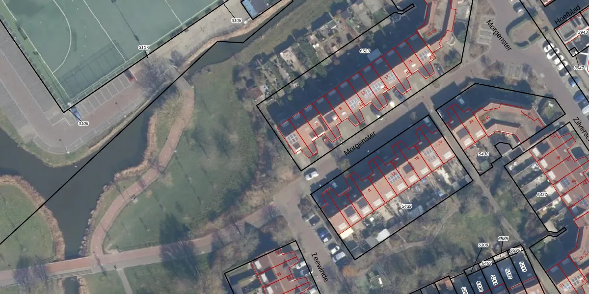 Het perceel waarop Morgenster 1 staat heeft een oppervlakte van 2657 m². Dit is een zeer groot perceel. De perceeloppervlakte wordt geregistreerd door het Kadaster. Gedetailleerde informatie over de maten van dit perceel kunt u vinden in het rapport Kadastrale kaart met maatvoering van Morgenster 1.