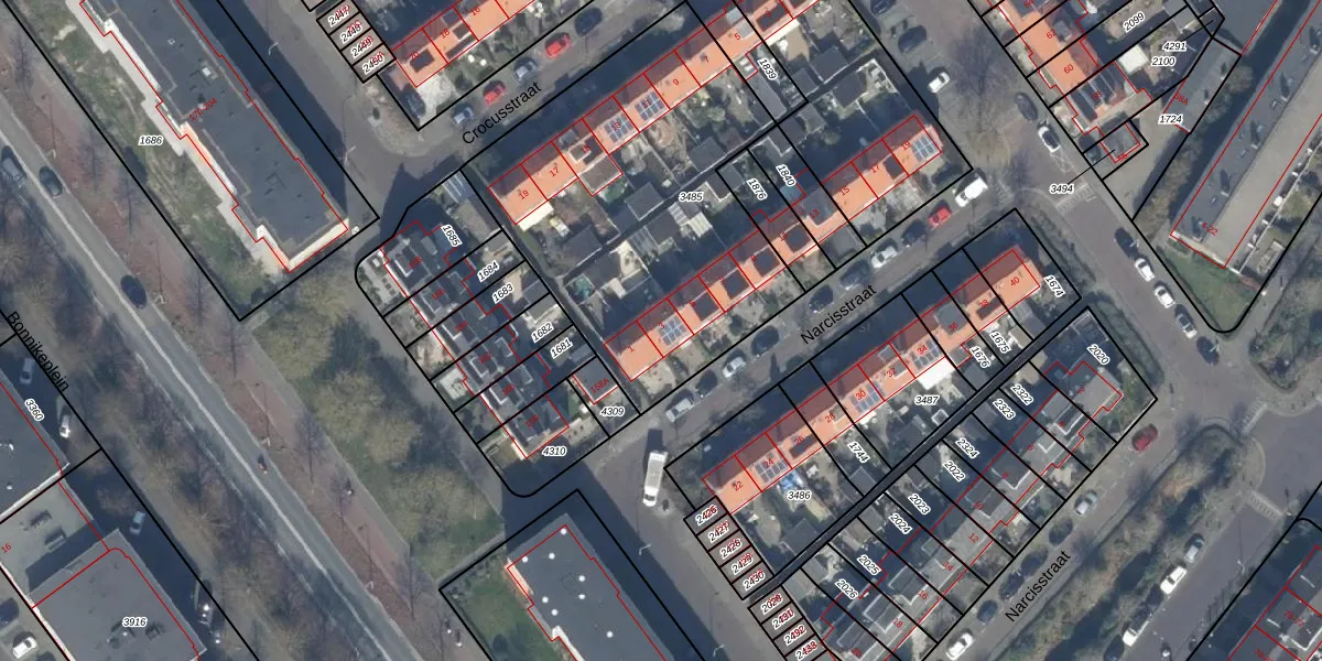 Het perceel waarop Narcisstraat 3 staat heeft een oppervlakte van 2475 m². Dit is een zeer groot perceel. De perceeloppervlakte wordt geregistreerd door het Kadaster. Gedetailleerde informatie over de maten van dit perceel kunt u vinden in het rapport Kadastrale kaart met maatvoering van Narcisstraat 3.