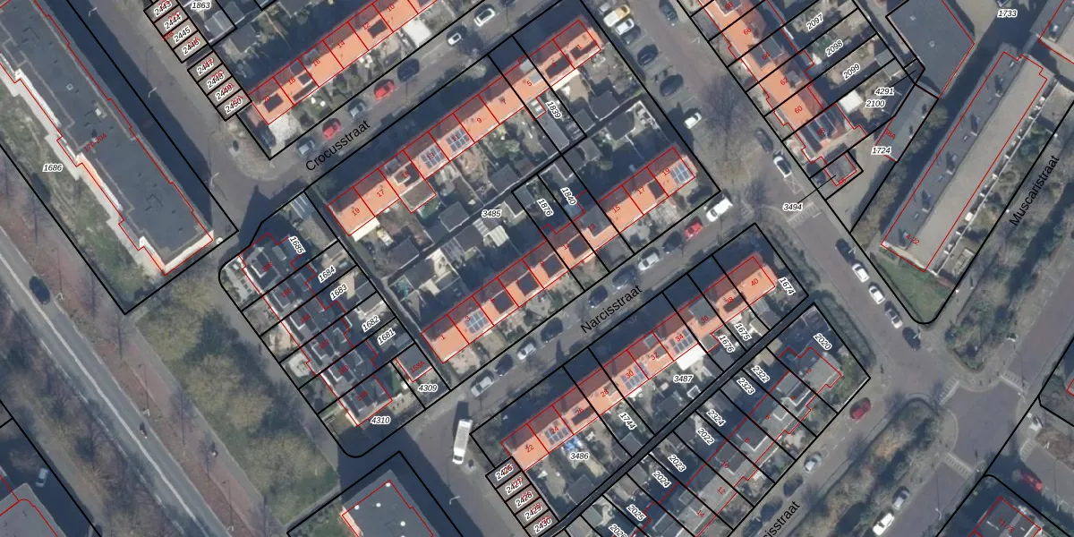 Het perceel waarop Narcisstraat 9 staat heeft een oppervlakte van 2475 m². Dit is een zeer groot perceel. De perceeloppervlakte wordt geregistreerd door het Kadaster. Gedetailleerde informatie over de maten van dit perceel kunt u vinden in het rapport Kadastrale kaart met maatvoering van Narcisstraat 9.