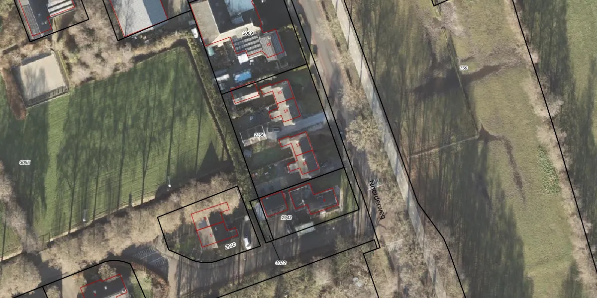 Het perceel waarop Noorderweg 12 staat heeft een oppervlakte van 1130 m². Dit is een zeer groot perceel. De perceeloppervlakte wordt geregistreerd door het Kadaster. Gedetailleerde informatie over de maten van dit perceel kunt u vinden in het rapport Kadastrale kaart met maatvoering van Noorderweg 12.