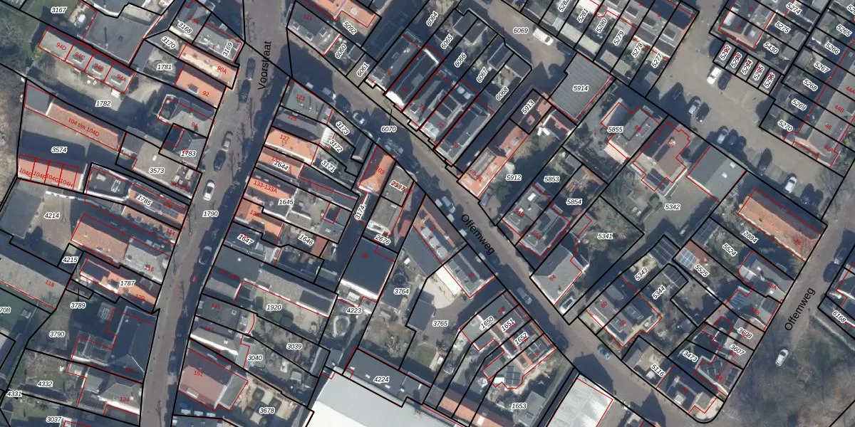 Het perceel waarop Offemweg 97 staat heeft een oppervlakte van 386 m². Dit is een groot perceel. De perceeloppervlakte wordt geregistreerd door het Kadaster. Gedetailleerde informatie over de maten van dit perceel kunt u vinden in het rapport Kadastrale kaart met maatvoering van Offemweg 97.