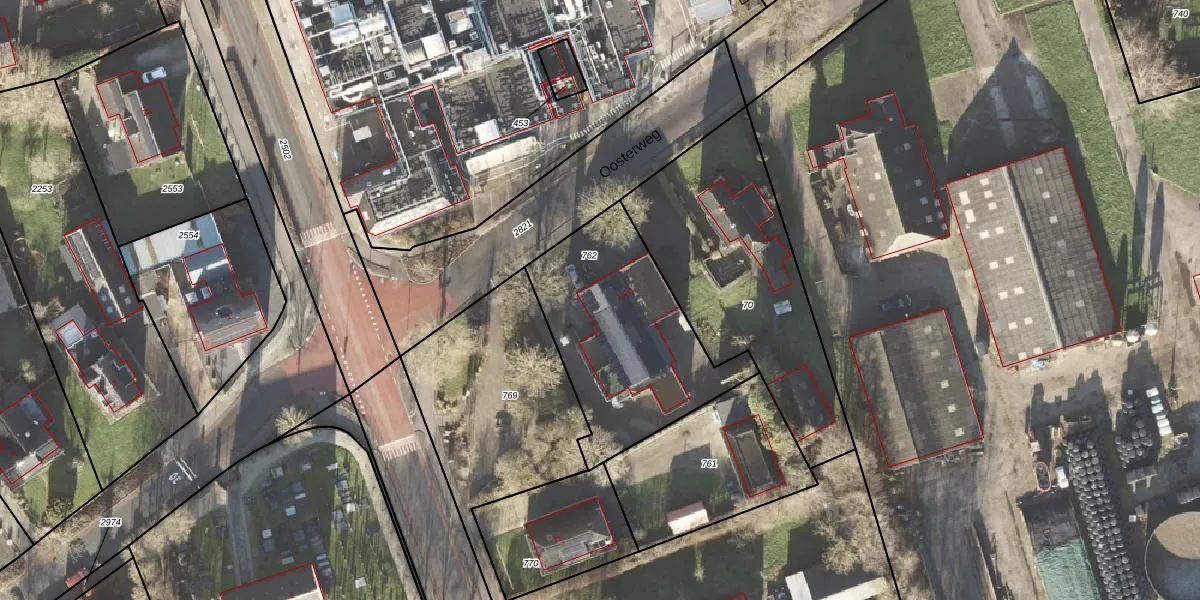 Het perceel waarop Oosterweg 1 staat heeft een oppervlakte van 800 m². Dit is een groot perceel. De perceeloppervlakte wordt geregistreerd door het Kadaster. Gedetailleerde informatie over de maten van dit perceel kunt u vinden in het rapport Kadastrale kaart met maatvoering van Oosterweg 1.