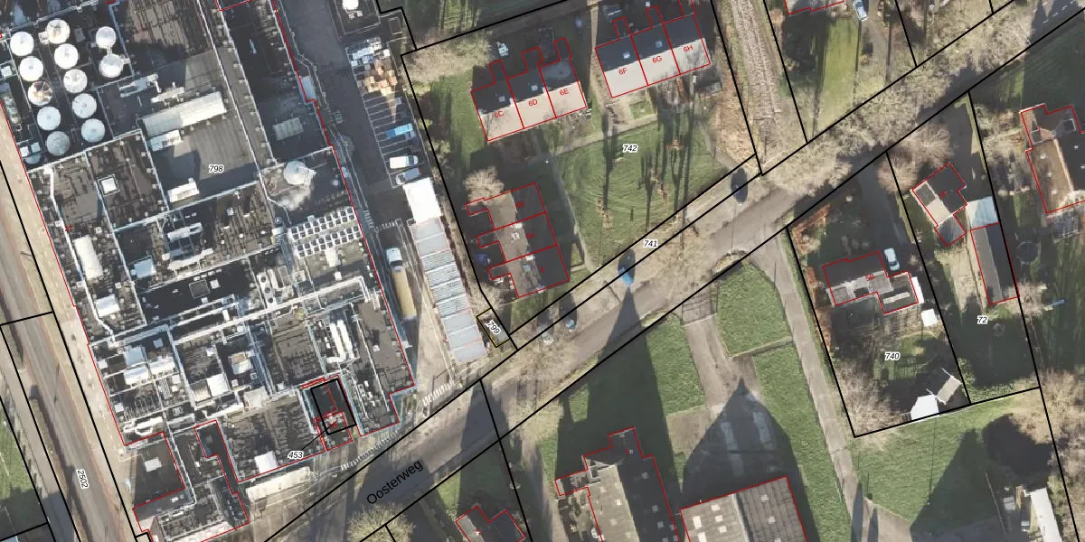 Het perceel waarop Oosterweg 6 staat heeft een oppervlakte van 2704 m². Dit is een zeer groot perceel. De perceeloppervlakte wordt geregistreerd door het Kadaster. Gedetailleerde informatie over de maten van dit perceel kunt u vinden in het rapport Kadastrale kaart met maatvoering van Oosterweg 6.