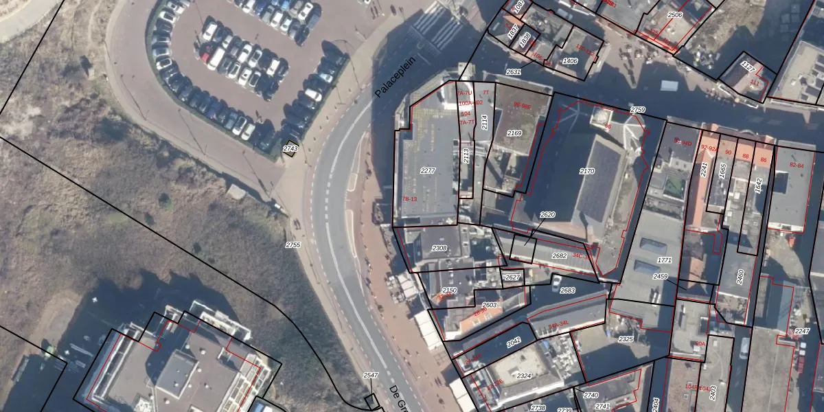 Het perceel waarop Palaceplein 13 staat heeft een oppervlakte van 479 m². Dit is een groot perceel. De perceeloppervlakte wordt geregistreerd door het Kadaster. Gedetailleerde informatie over de maten van dit perceel kunt u vinden in het rapport Kadastrale kaart met maatvoering van Palaceplein 13.