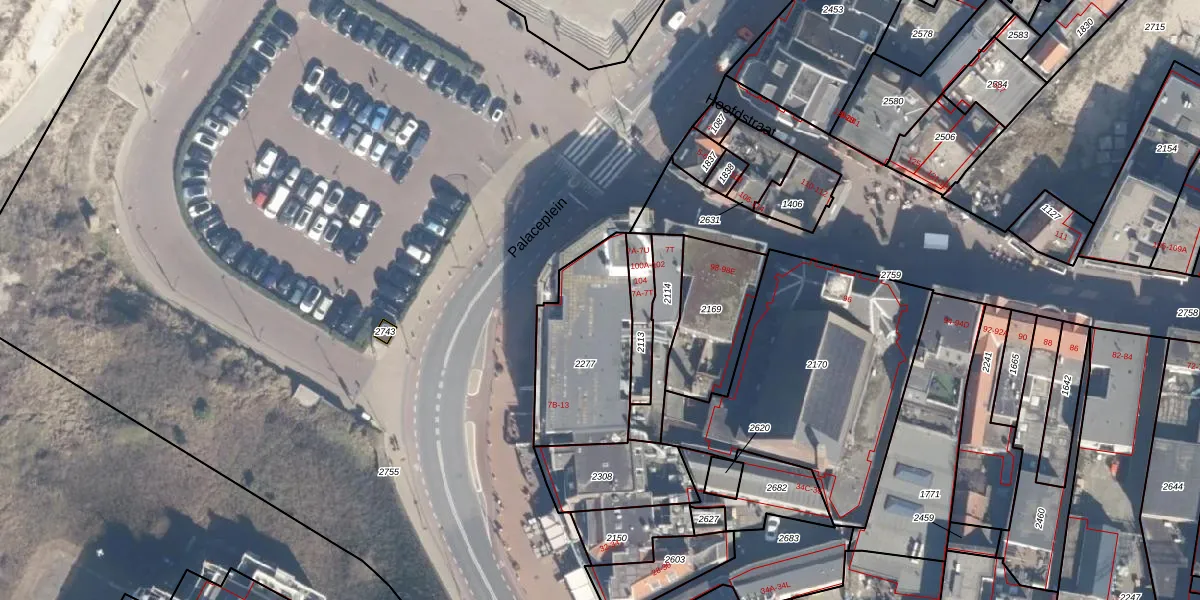 Palaceplein 7-D is gelegen op kadastraal perceel NWK02E2277. Deze kadastrale aanduiding is uniek en wordt gebruikt door het Kadaster om eigendomsrechten en andere zakelijke rechten vast te leggen. Het perceel maakt onderdeel uit van de kadastrale gemeente Noordwijk.