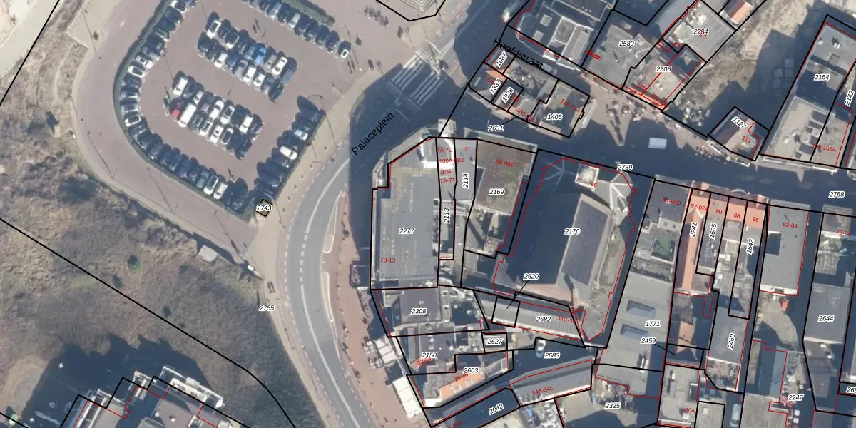 Palaceplein 7-F is gelegen op kadastraal perceel NWK02E2277. Deze kadastrale aanduiding is uniek en wordt gebruikt door het Kadaster om eigendomsrechten en andere zakelijke rechten vast te leggen. Het perceel maakt onderdeel uit van de kadastrale gemeente Noordwijk.