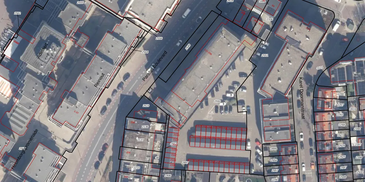 Parallel Boulevard 214 is gelegen op kadastraal perceel NWK02N2550. Deze kadastrale aanduiding is uniek en wordt gebruikt door het Kadaster om eigendomsrechten en andere zakelijke rechten vast te leggen. Het perceel maakt onderdeel uit van de kadastrale gemeente Noordwijk.