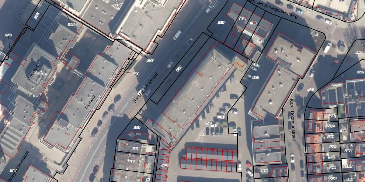 Het perceel waarop Parallel Boulevard 222 staat heeft een oppervlakte van 3405 m². Dit is een zeer groot perceel. De perceeloppervlakte wordt geregistreerd door het Kadaster. Gedetailleerde informatie over de maten van dit perceel kunt u vinden in het rapport Kadastrale kaart met maatvoering van Parallel Boulevard 222.
