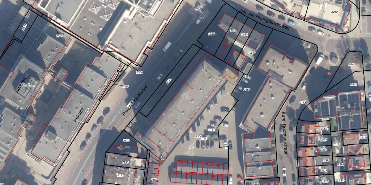 Parallel Boulevard 282 is gelegen op kadastraal perceel NWK02N2550. Deze kadastrale aanduiding is uniek en wordt gebruikt door het Kadaster om eigendomsrechten en andere zakelijke rechten vast te leggen. Het perceel maakt onderdeel uit van de kadastrale gemeente Noordwijk.