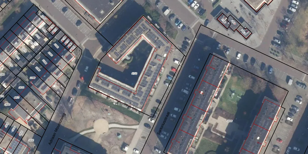 Het perceel waarop Sartoriusstraat 69 staat heeft een oppervlakte van 2229 m². Dit is een zeer groot perceel. De perceeloppervlakte wordt geregistreerd door het Kadaster. Gedetailleerde informatie over de maten van dit perceel kunt u vinden in het rapport Kadastrale kaart met maatvoering van Sartoriusstraat 69.