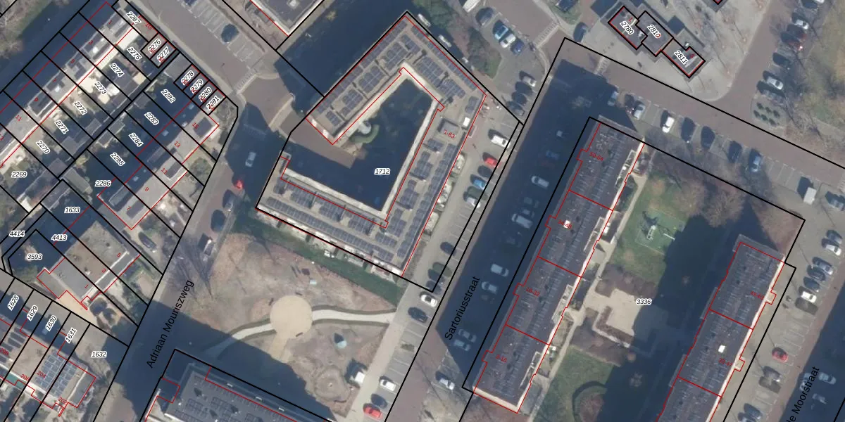 Het perceel waarop Sartoriusstraat 71 staat heeft een oppervlakte van 2229 m². Dit is een zeer groot perceel. De perceeloppervlakte wordt geregistreerd door het Kadaster. Gedetailleerde informatie over de maten van dit perceel kunt u vinden in het rapport Kadastrale kaart met maatvoering van Sartoriusstraat 71.