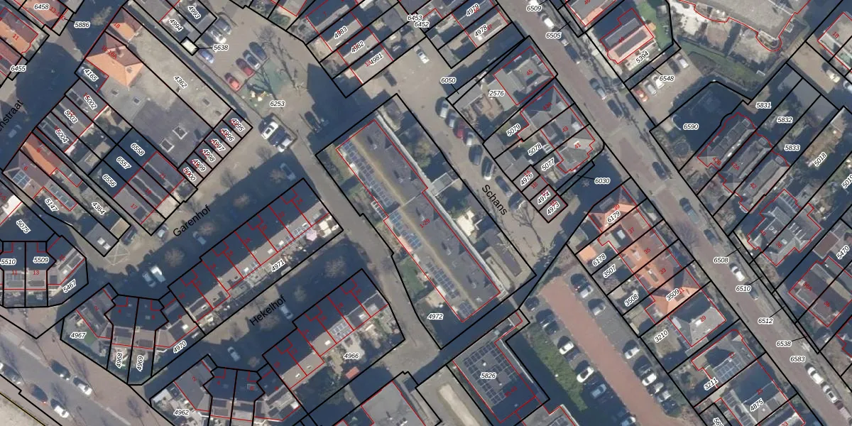 Het perceel waarop Schans 11 staat heeft een oppervlakte van 1373 m². Dit is een zeer groot perceel. De perceeloppervlakte wordt geregistreerd door het Kadaster. Gedetailleerde informatie over de maten van dit perceel kunt u vinden in het rapport Kadastrale kaart met maatvoering van Schans 11.