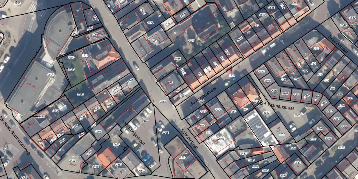 Gebruik de zoekbalk of klik op een perceel voor informatie over de adressen binnen dit perceel.