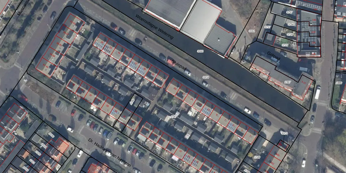 Het perceel waarop Sluispad 19 staat heeft een oppervlakte van 6079 m². Dit is een zeer groot perceel. De perceeloppervlakte wordt geregistreerd door het Kadaster. Gedetailleerde informatie over de maten van dit perceel kunt u vinden in het rapport Kadastrale kaart met maatvoering van Sluispad 19.