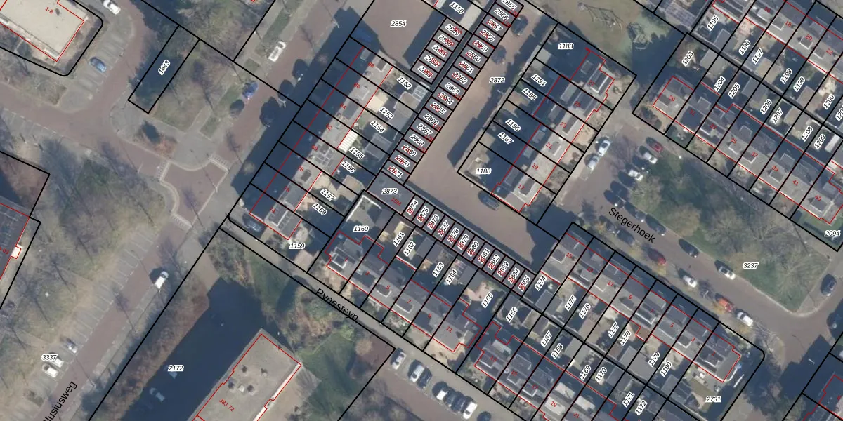 Het perceel waarop Stegerhoek 15-K staat heeft een oppervlakte van 18 m². Dit is een klein perceel. De perceeloppervlakte wordt geregistreerd door het Kadaster. Gedetailleerde informatie over de maten van dit perceel kunt u vinden in het rapport Kadastrale kaart met maatvoering van Stegerhoek 15-K.