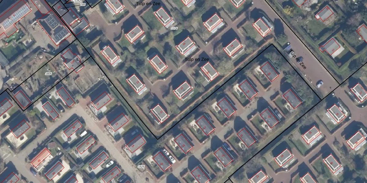 Tulp en Zee 21 is gelegen op kadastraal perceel NWK02C1376. Deze kadastrale aanduiding is uniek en wordt gebruikt door het Kadaster om eigendomsrechten en andere zakelijke rechten vast te leggen. Het perceel maakt onderdeel uit van de kadastrale gemeente Noordwijk.