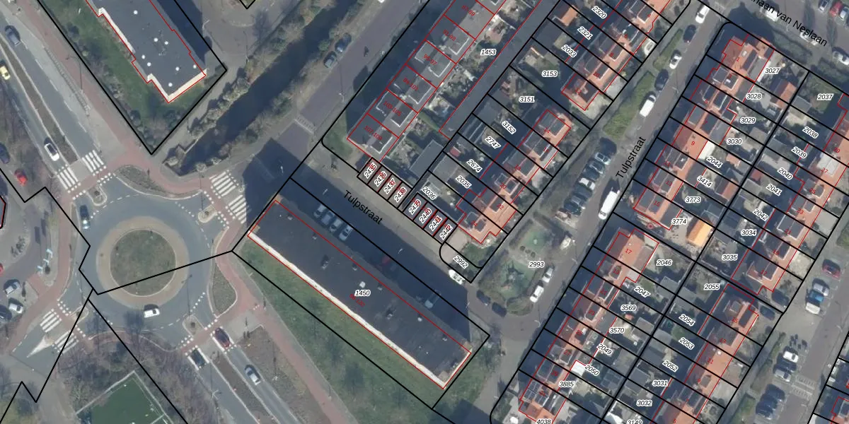 Het perceel waarop Tulpstraat 24-C staat heeft een oppervlakte van 18 m². Dit is een klein perceel. De perceeloppervlakte wordt geregistreerd door het Kadaster. Gedetailleerde informatie over de maten van dit perceel kunt u vinden in het rapport Kadastrale kaart met maatvoering van Tulpstraat 24-C.