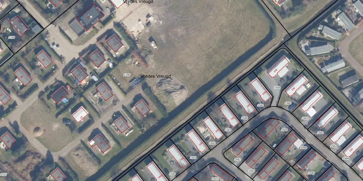 Het perceel waarop Vredes Vreugd 19 staat heeft een oppervlakte van 1,6 ha. Dit is een zeer groot perceel. De perceeloppervlakte wordt geregistreerd door het Kadaster. Gedetailleerde informatie over de maten van dit perceel kunt u vinden in het rapport Kadastrale kaart met maatvoering van Vredes Vreugd 19.