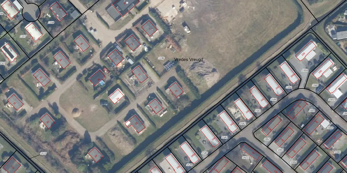 Het perceel waarop Vredes Vreugd 21 staat heeft een oppervlakte van 1,6 ha. Dit is een zeer groot perceel. De perceeloppervlakte wordt geregistreerd door het Kadaster. Gedetailleerde informatie over de maten van dit perceel kunt u vinden in het rapport Kadastrale kaart met maatvoering van Vredes Vreugd 21.