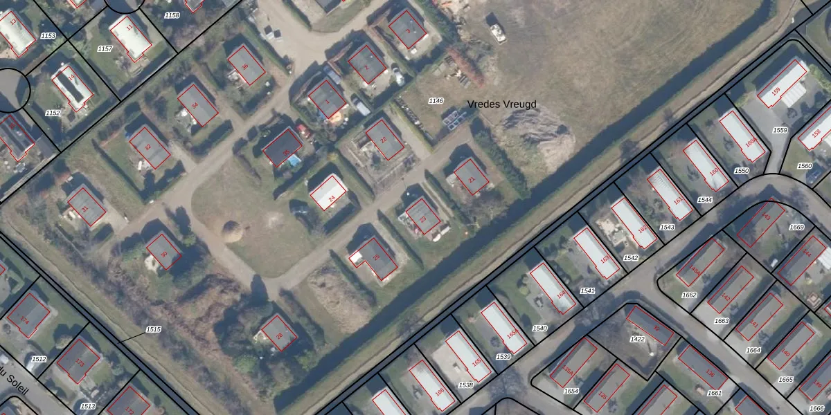 Het perceel waarop Vredes Vreugd 23 staat heeft een oppervlakte van 1,6 ha. Dit is een zeer groot perceel. De perceeloppervlakte wordt geregistreerd door het Kadaster. Gedetailleerde informatie over de maten van dit perceel kunt u vinden in het rapport Kadastrale kaart met maatvoering van Vredes Vreugd 23.