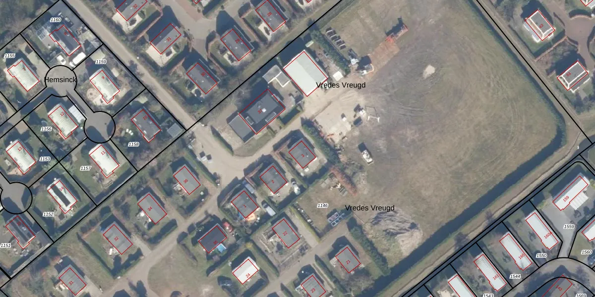 Het perceel waarop Vredes Vreugd 3 staat heeft een oppervlakte van 1,6 ha. Dit is een zeer groot perceel. De perceeloppervlakte wordt geregistreerd door het Kadaster. Gedetailleerde informatie over de maten van dit perceel kunt u vinden in het rapport Kadastrale kaart met maatvoering van Vredes Vreugd 3.