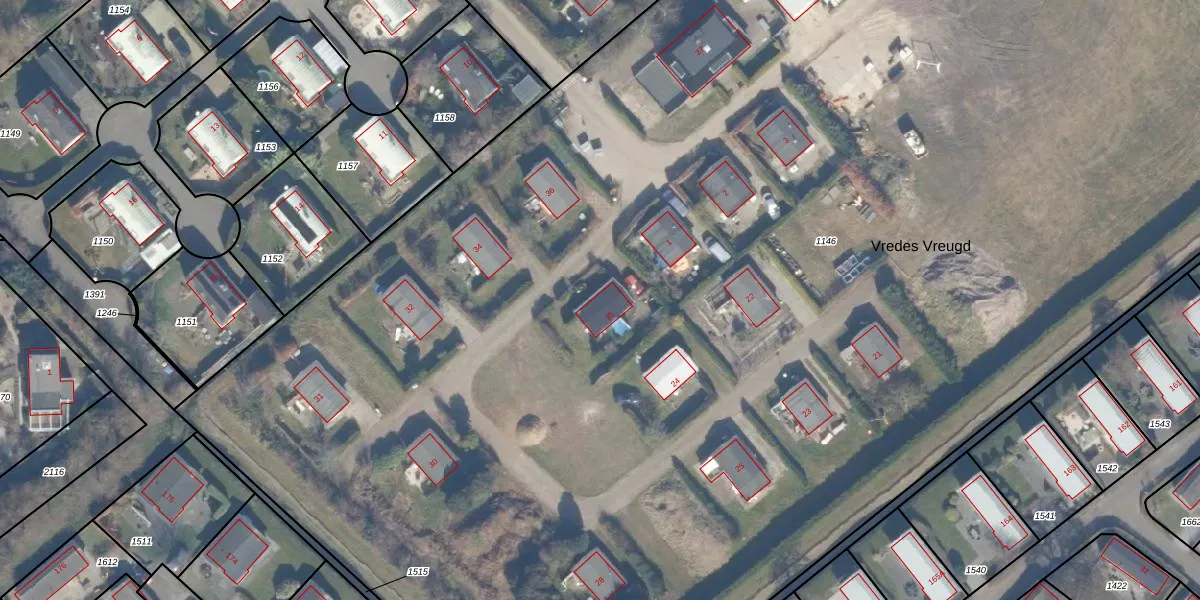 Het perceel waarop Vredes Vreugd 35 staat heeft een oppervlakte van 1,6 ha. Dit is een zeer groot perceel. De perceeloppervlakte wordt geregistreerd door het Kadaster. Gedetailleerde informatie over de maten van dit perceel kunt u vinden in het rapport Kadastrale kaart met maatvoering van Vredes Vreugd 35.