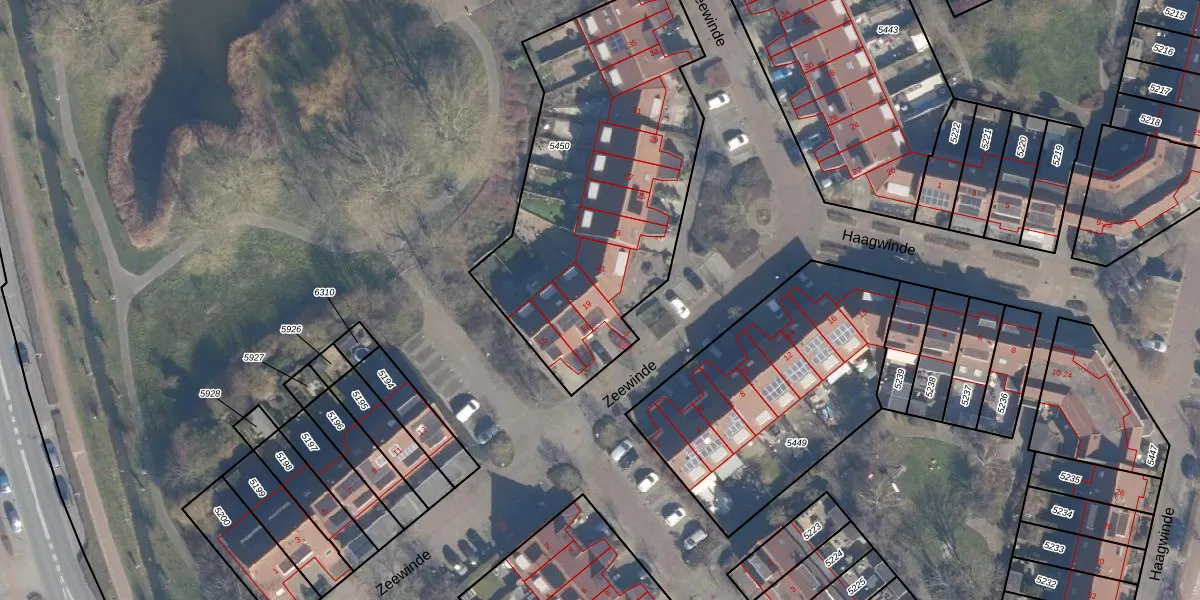 Het perceel waarop Zeewinde 19 staat heeft een oppervlakte van 1586 m². Dit is een zeer groot perceel. De perceeloppervlakte wordt geregistreerd door het Kadaster. Gedetailleerde informatie over de maten van dit perceel kunt u vinden in het rapport Kadastrale kaart met maatvoering van Zeewinde 19.