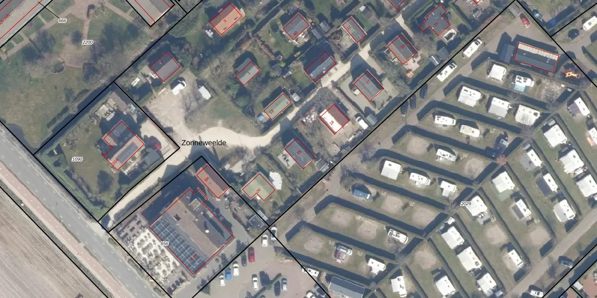Zonneweelde 19 is gelegen op kadastraal perceel NWK02C1091. Deze kadastrale aanduiding is uniek en wordt gebruikt door het Kadaster om eigendomsrechten en andere zakelijke rechten vast te leggen. Het perceel maakt onderdeel uit van de kadastrale gemeente Noordwijk.