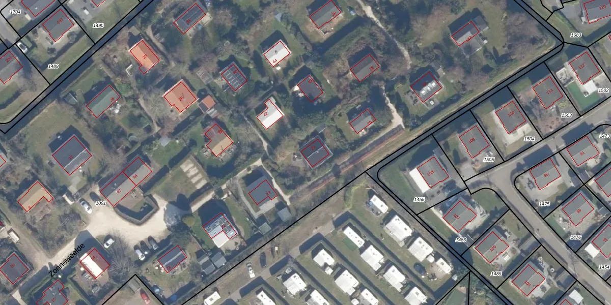 Het perceel waarop Zonneweelde 24 staat heeft een oppervlakte van 2,1 ha. Dit is een zeer groot perceel. De perceeloppervlakte wordt geregistreerd door het Kadaster. Gedetailleerde informatie over de maten van dit perceel kunt u vinden in het rapport Kadastrale kaart met maatvoering van Zonneweelde 24.