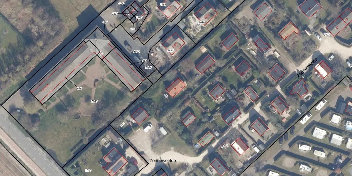 Het perceel waarop Zonneweelde 3 staat heeft een oppervlakte van 2,1 ha. Dit is een zeer groot perceel. De perceeloppervlakte wordt geregistreerd door het Kadaster. Gedetailleerde informatie over de maten van dit perceel kunt u vinden in het rapport Kadastrale kaart met maatvoering van Zonneweelde 3.
