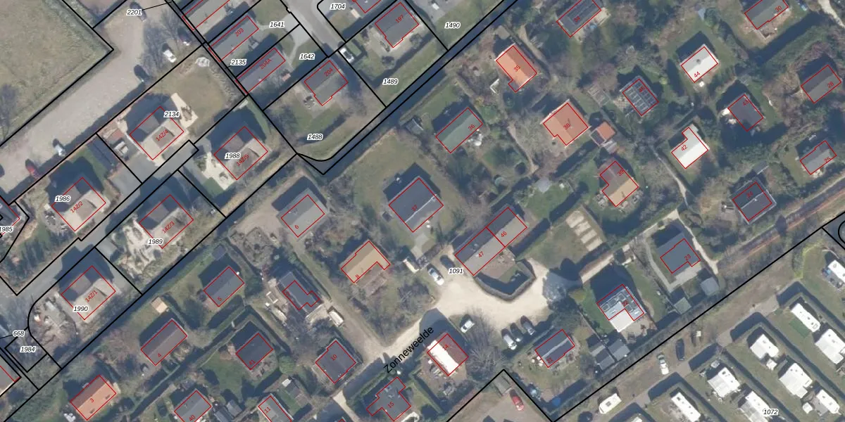 Het perceel waarop Zonneweelde 37 staat heeft een oppervlakte van 2,1 ha. Dit is een zeer groot perceel. De perceeloppervlakte wordt geregistreerd door het Kadaster. Gedetailleerde informatie over de maten van dit perceel kunt u vinden in het rapport Kadastrale kaart met maatvoering van Zonneweelde 37.