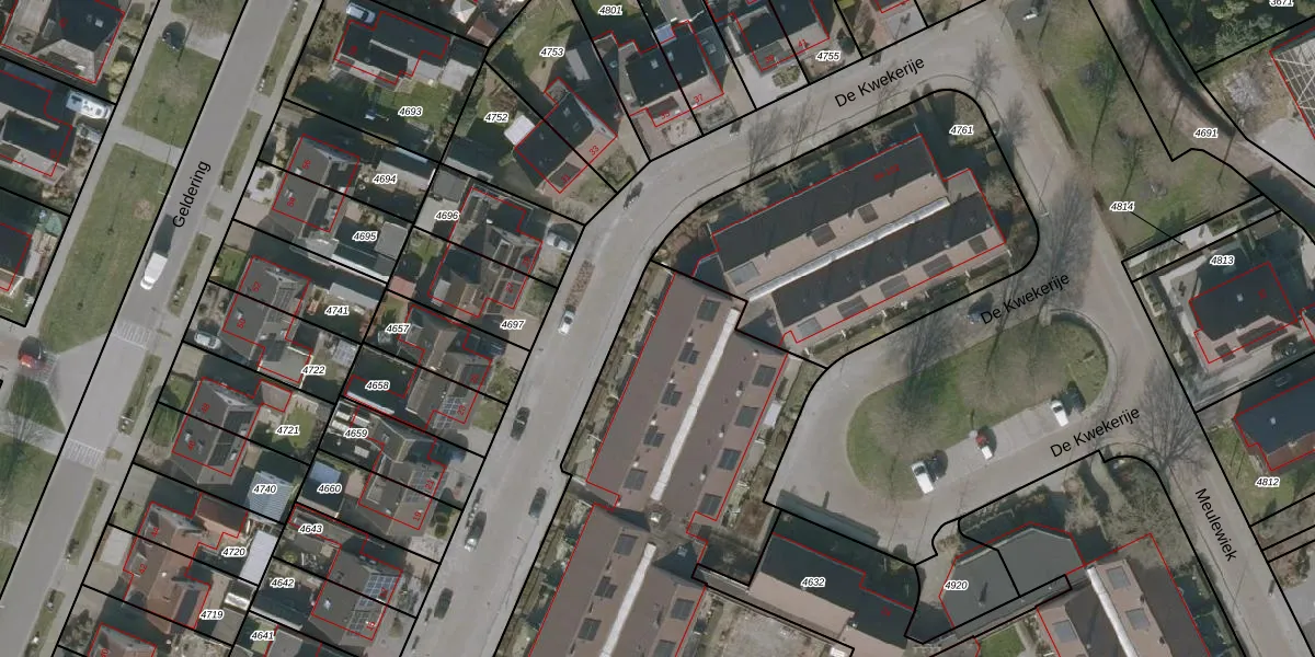 Het perceel waarop De Kwekerije 76 staat heeft een oppervlakte van 6808 m². Dit is een zeer groot perceel. De perceeloppervlakte wordt geregistreerd door het Kadaster. Gedetailleerde informatie over de maten van dit perceel kunt u vinden in het rapport Kadastrale kaart met maatvoering van De Kwekerije 76.