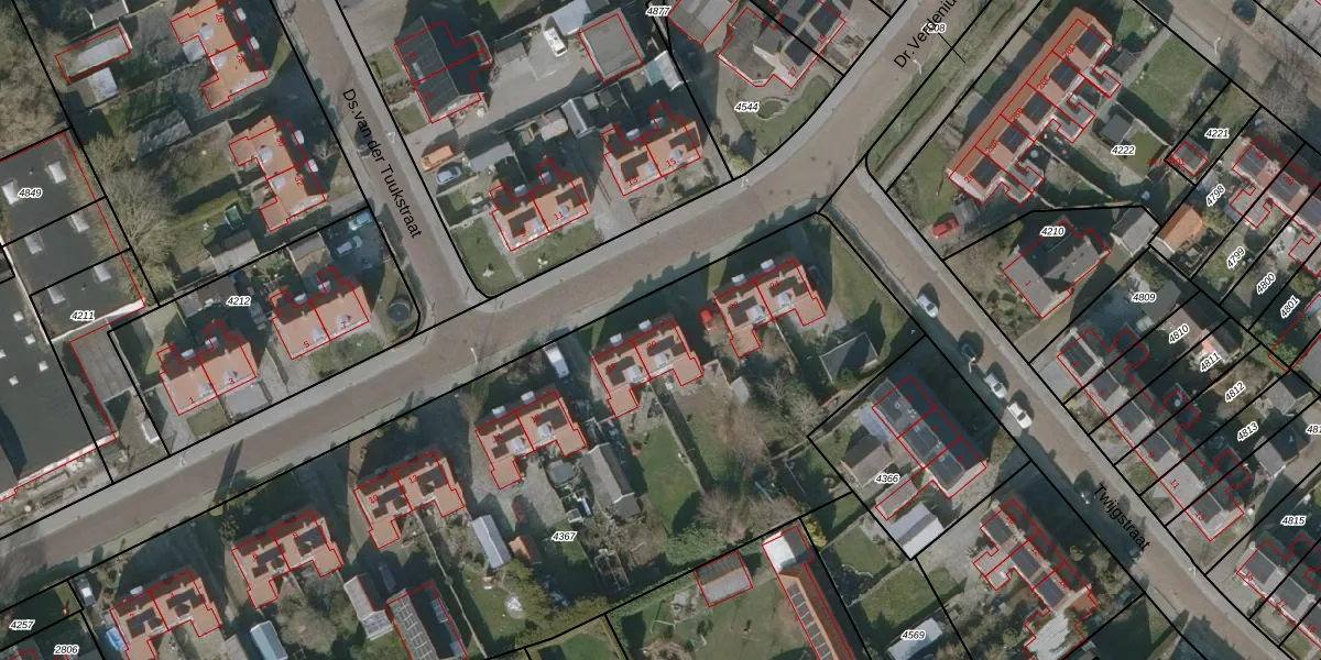 Het perceel waarop Dr.Verdeniusstraat 20 staat heeft een oppervlakte van 4710 m². Dit is een zeer groot perceel. De perceeloppervlakte wordt geregistreerd door het Kadaster. Gedetailleerde informatie over de maten van dit perceel kunt u vinden in het rapport Kadastrale kaart met maatvoering van Dr.Verdeniusstraat 20.