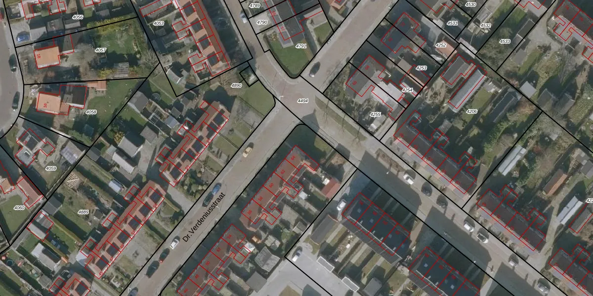 Het perceel waarop Dr.Verdeniusstraat 64 staat heeft een oppervlakte van 5660 m². Dit is een zeer groot perceel. De perceeloppervlakte wordt geregistreerd door het Kadaster. Gedetailleerde informatie over de maten van dit perceel kunt u vinden in het rapport Kadastrale kaart met maatvoering van Dr.Verdeniusstraat 64.