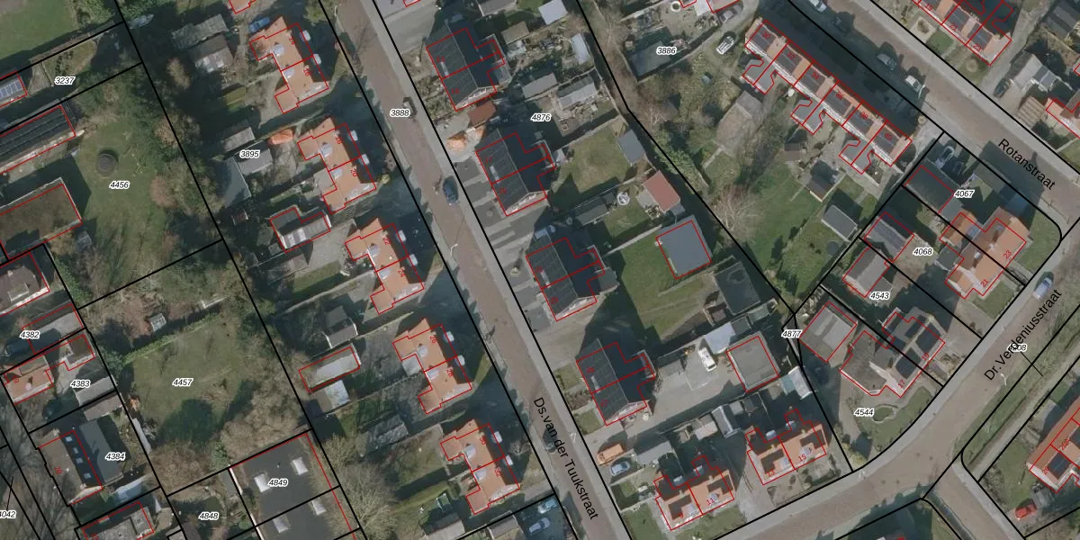 Het perceel waarop Ds.van der Tuukstraat 21 staat heeft een oppervlakte van 6616 m². Dit is een zeer groot perceel. De perceeloppervlakte wordt geregistreerd door het Kadaster. Gedetailleerde informatie over de maten van dit perceel kunt u vinden in het rapport Kadastrale kaart met maatvoering van Ds.van der Tuukstraat 21.