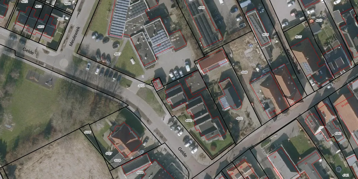 Het perceel waarop Gelde 2-E staat heeft een oppervlakte van 1031 m². Dit is een zeer groot perceel. De perceeloppervlakte wordt geregistreerd door het Kadaster. Gedetailleerde informatie over de maten van dit perceel kunt u vinden in het rapport Kadastrale kaart met maatvoering van Gelde 2-E.