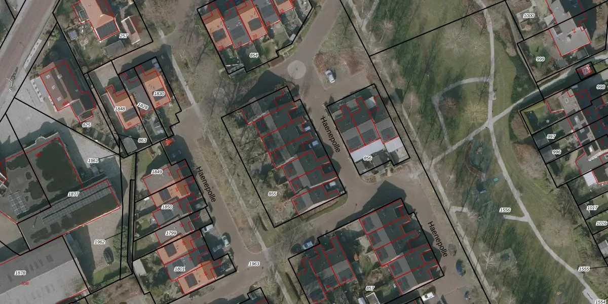 Het perceel waarop Haenepolle 13 staat heeft een oppervlakte van 1042 m². Dit is een zeer groot perceel. De perceeloppervlakte wordt geregistreerd door het Kadaster. Gedetailleerde informatie over de maten van dit perceel kunt u vinden in het rapport Kadastrale kaart met maatvoering van Haenepolle 13.