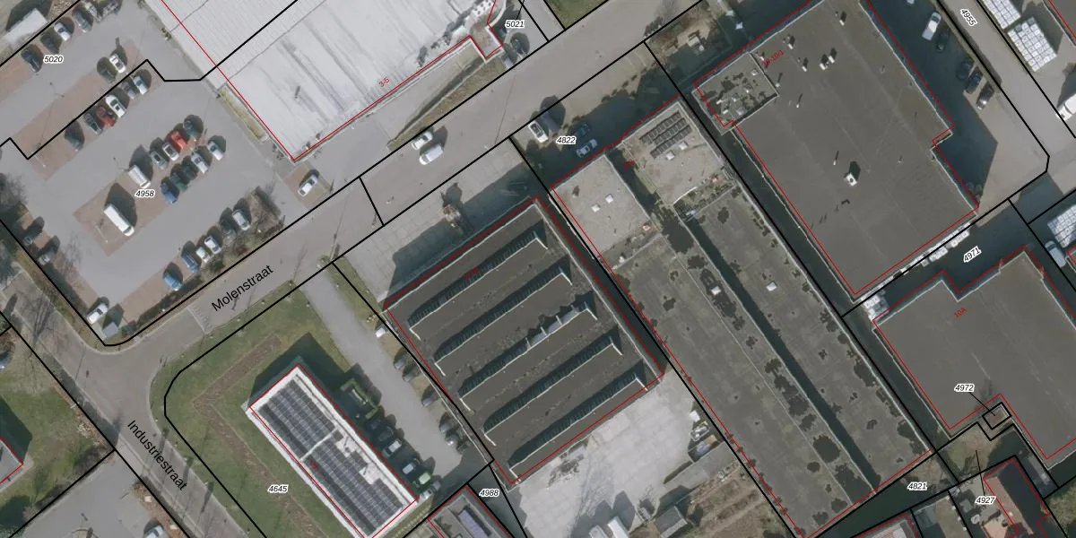 Het perceel waarop Molenstraat 2-A staat heeft een oppervlakte van 3818 m². Dit is een zeer groot perceel. De perceeloppervlakte wordt geregistreerd door het Kadaster. Gedetailleerde informatie over de maten van dit perceel kunt u vinden in het rapport Kadastrale kaart met maatvoering van Molenstraat 2-A.