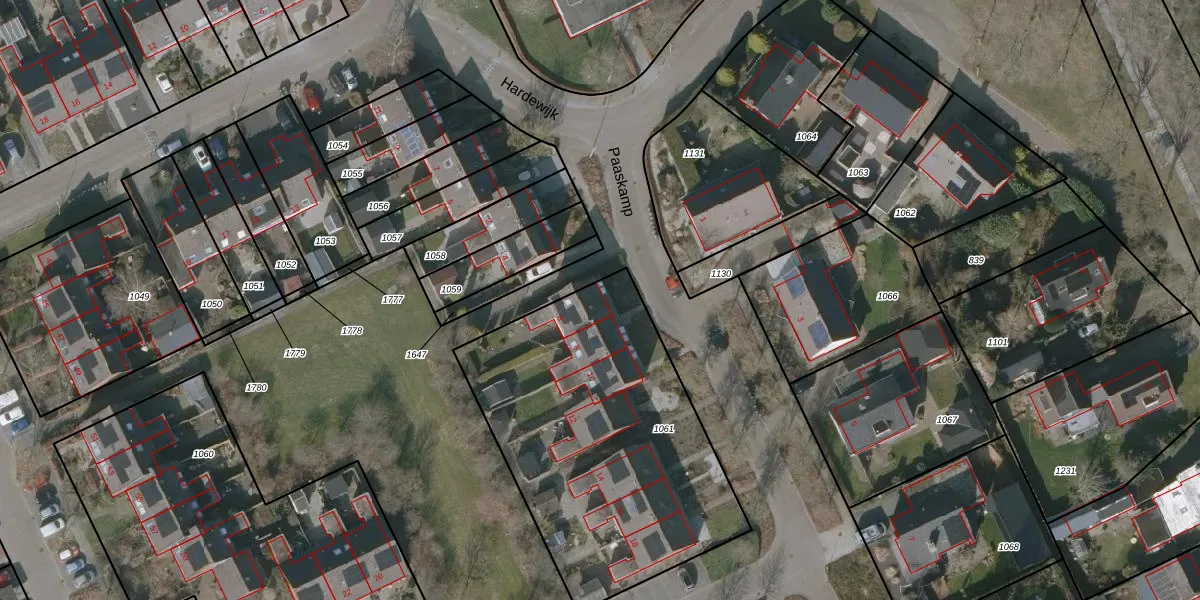 Het perceel waarop Paaskamp 6 staat heeft een oppervlakte van 1554 m². Dit is een zeer groot perceel. De perceeloppervlakte wordt geregistreerd door het Kadaster. Gedetailleerde informatie over de maten van dit perceel kunt u vinden in het rapport Kadastrale kaart met maatvoering van Paaskamp 6.