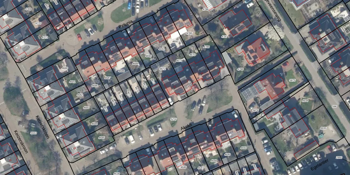 Het perceel waarop Akelei 15 staat heeft een oppervlakte van 292 m². Dit is een middelgroot perceel. De perceeloppervlakte wordt geregistreerd door het Kadaster. Gedetailleerde informatie over de maten van dit perceel kunt u vinden in het rapport Kadastrale kaart met maatvoering van Akelei 15.
