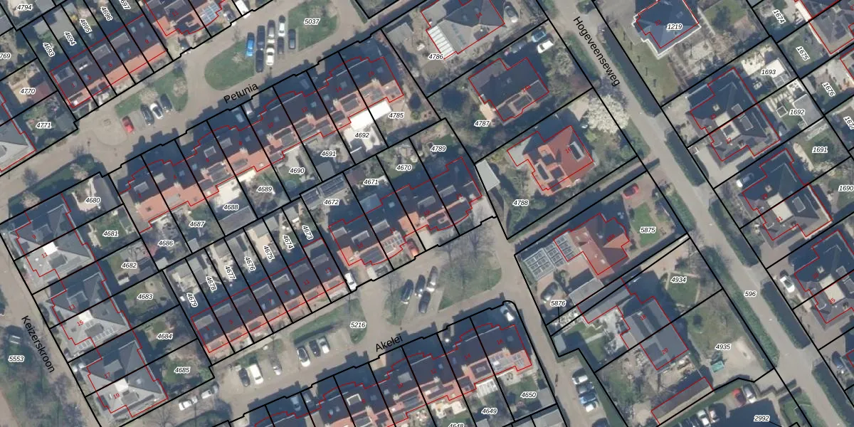 Het perceel waarop Akelei 19 staat heeft een oppervlakte van 225 m². Dit is een middelgroot perceel. De perceeloppervlakte wordt geregistreerd door het Kadaster. Gedetailleerde informatie over de maten van dit perceel kunt u vinden in het rapport Kadastrale kaart met maatvoering van Akelei 19.