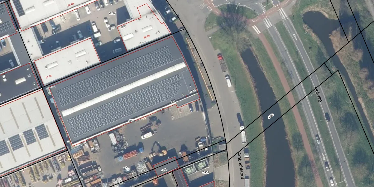 Het perceel waarop Ambachtshof 2 staat heeft een oppervlakte van 5258 m². Dit is een zeer groot perceel. De perceeloppervlakte wordt geregistreerd door het Kadaster. Gedetailleerde informatie over de maten van dit perceel kunt u vinden in het rapport Kadastrale kaart met maatvoering van Ambachtshof 2.