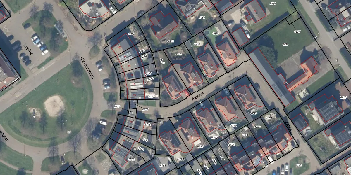 Het perceel waarop Azalea 1 staat heeft een oppervlakte van 376 m². Dit is een groot perceel. De perceeloppervlakte wordt geregistreerd door het Kadaster. Gedetailleerde informatie over de maten van dit perceel kunt u vinden in het rapport Kadastrale kaart met maatvoering van Azalea 1.